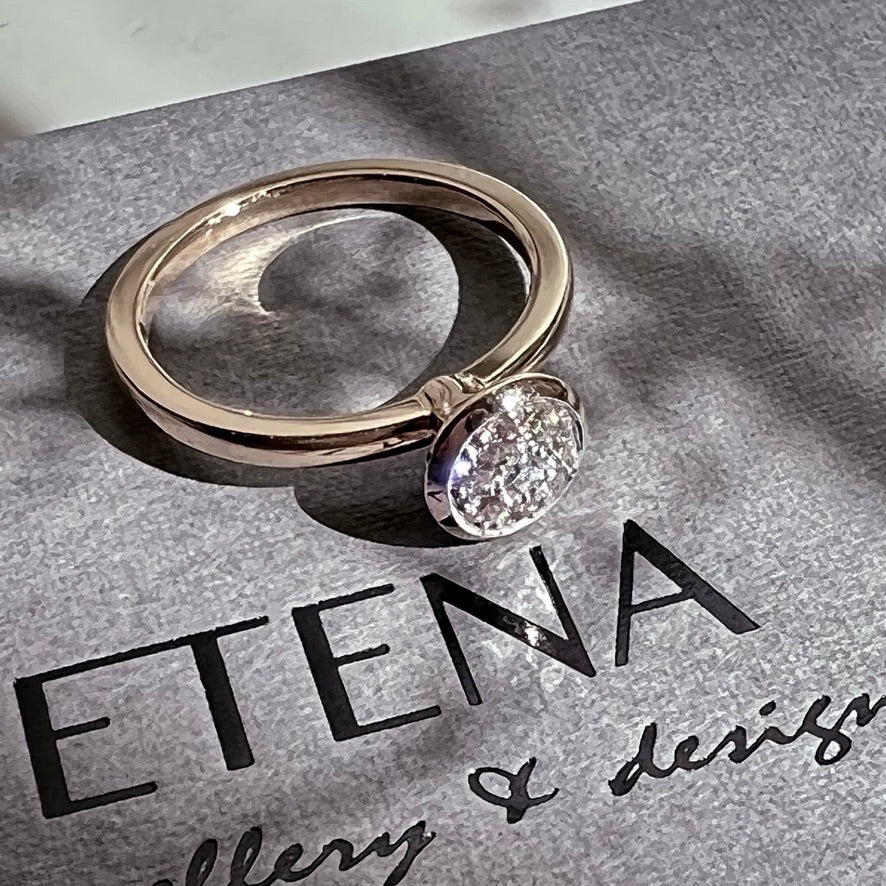 Ringen som är både ett smycke och litet konstverk, som kan stå för sig själv. Alla ringar görs i egen ateljé av ETENA Jewellery & design. Välkomna att se vårt aktuella utbud direkt i butik.